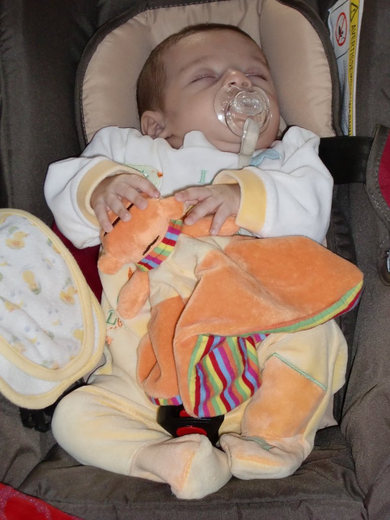 Bref, ce matin du vendredi 21 mai 2010, nous sommes en voiture, Laurent, Sencey, Kheira et moi, pour aller au travail. Le portable sonne et je reconnais le numéro du conseil général. Je commence à pester en disant qu’il doit leur manquer un papier pour le renouvellement de l’agrément, que je rappellerai plus tard. Laurent décide de répondre, chose qu’il ne fait jamais. Je l’entends dire « bonjour Monsieur, je suis en train de conduire, ne quittait pas je vous passe ma femme » (je m’imagine le pire, car j’ai toujours contact avec Sylvie P… et si ce n’est pas elle en ligne c’est qu’il y a un problème… vous sentez la nana confiante !) Je prends donc la suite de l’appel et j’écoute « bonjour madame, je suis l’inspecteur de l’ASE (Aide Sociale à l’Enfance), je vous appelle pour vous annoncer que vous êtes les heureux parents d’un petit garçon né le ** mars 2010 » – rien qu’en l’écrivant j’ai des frissons et le cœur qui se serre tellement ça m’émeut – je commence à pleurer au téléphone et n’arrive plus à parler. Il me dit « je ne vous entends plus mais j’ai l’habitude, écoutez-moi. Nous avons prévenu depuis déjà 15 jours ce petit garçon, qu’il a maintenant une famille, une maison avec un grand jardin et 2 chiens qui l’attendent. Lundi étant férié, si vous êtes d’accord,on se donne rendez-vous à la pouponnière mardi matin à 9 heures pour le rencontrer » Bon il n’y a pas de doute, la réponse est : OUI ! Nous avons prévenu nos parents dans la foulée. Les premières réactions, appelant en pleurs, car toujours sous le coup de l’émotion, ont été leur inquiétude, pensant que Sencey nous avait quitté… puis rassuré, quand j’ai annoncé à ma mère « maman tu vas être grand-mère ! » elle a d’abord été surprise et très rapidement heureuse, puis m’a demandé « c’est pour quand ? » j’ai répondu « dans 3 jours » elle n’a pas bien compris sur le moment mais tout s’est vite installé en chacun de nous.